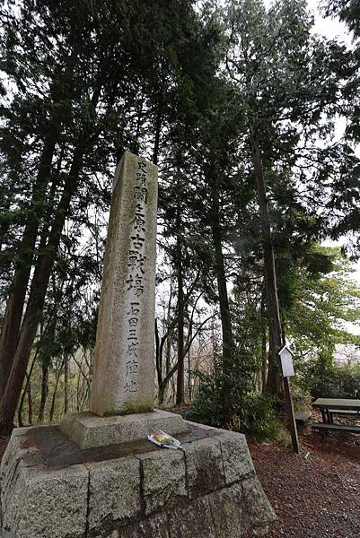 沿著小徑走上笹尾山頂石田三成的陣地,這有個大大的石碑,上面寫著石