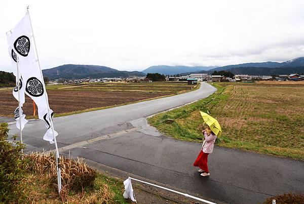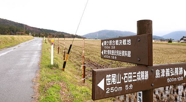 沿著另一條滿是泥濘的道路下山,再散步到關之原的決戰場地,沿路兩邊