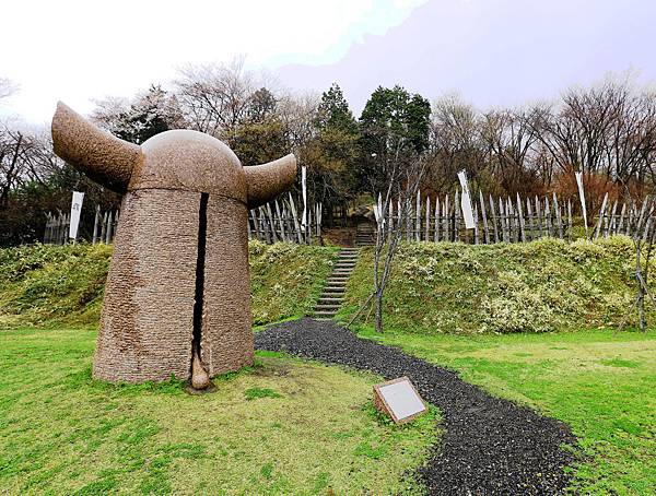 笹尾山前有一個以武士「兜」狀的大型石像,從遠望去就有濃濃的殺伐氣
