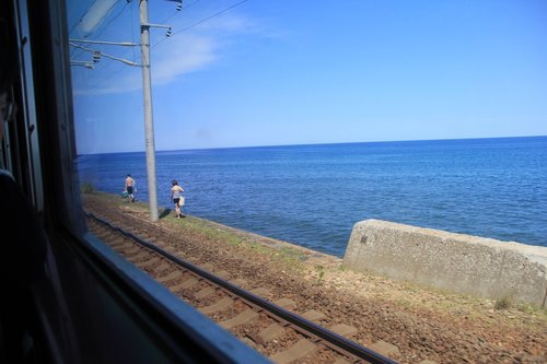 火車上隨手拍,天空藍,海水更藍~