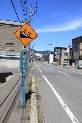 在抓對方向後,朝運河方向前進,不管是從小樽站或是南小樽,都會碰上這種下坡道!在旅客的眼中,道路就像是溜滑梯一樣有趣!斜坡的底端就是觀光的開端~