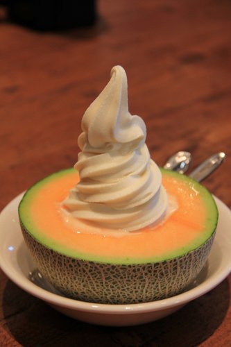 在大太陽下走太久了!一定要躲進這古色古香的小屋裡吃個哈密瓜冰淇淋!