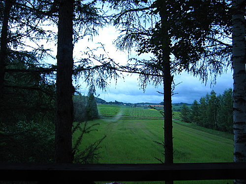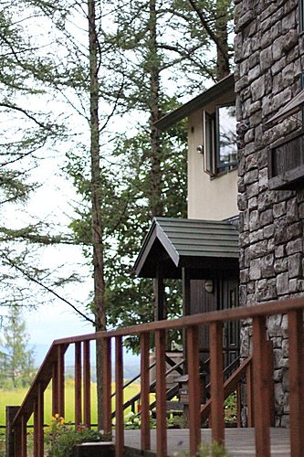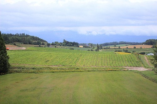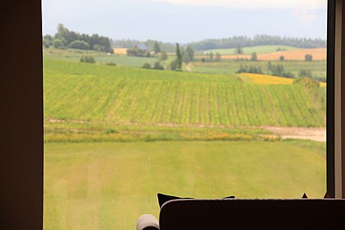 民宿位於美瑛的一個小小山坡上(會說小是因為不高),從門口的山坡上望去,彷彿綠黃色拼布般的廣大丘陵盡入眼簾,微風裡帶著松樹的清香,在這,彷彿大自然都因為這舒服的景緻而微笑,我知道我沒有選錯地方。