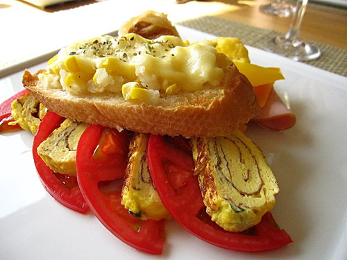 緩慢民宿內有許多值得細細品味之處,但最棒的東西有三樣,第一樣就是餐廳的風景,餐廳有一面是整片的落地窗,從落地窗看出去,可以看到綿延起伏的丘崚,一直延伸到當地的聖山—十勝連峰,三愛之丘茶屋像是老爺爺般安詳的蹲在不遠的前方,讓人感到幸福滿點。