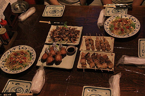 因為我們是連續住兩個晚上,所以體貼的管家顧慮到晚餐菜色的問題,而帶我們去美瑛町上的居酒屋吃晚餐! 我們才一進去,菜都已經滿滿的擺在桌上了! 吃到肚子都撐起來了~~聽說這間居酒屋還是一個藝人開的呢!