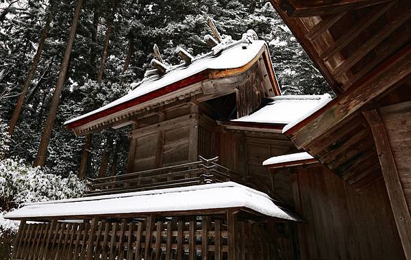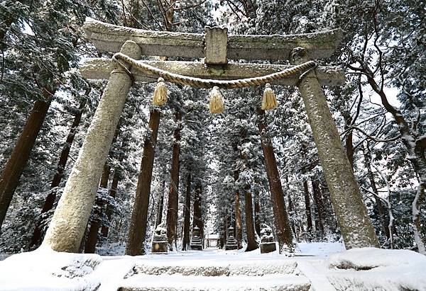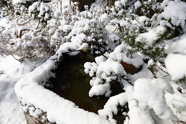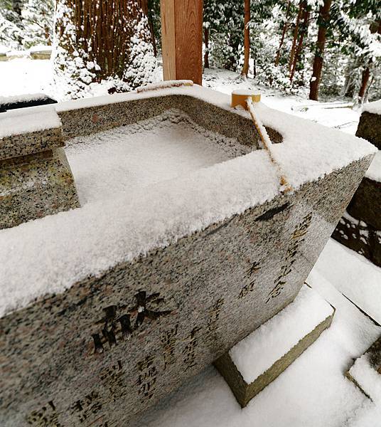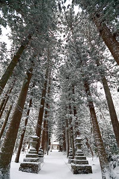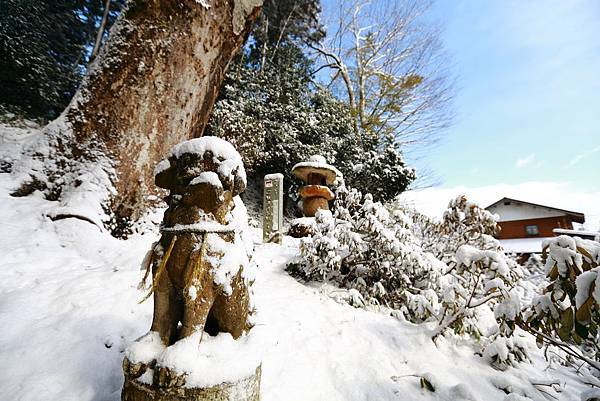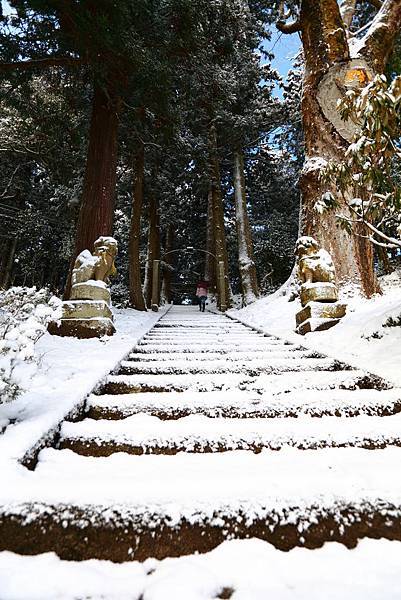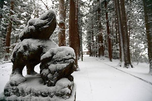 兩側的石狛犬(こまいぬ)身上,都積了厚厚的白雪,中和了原本沉厚嚴