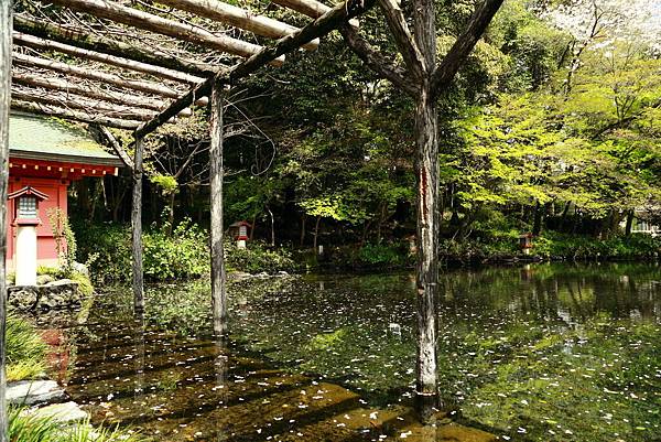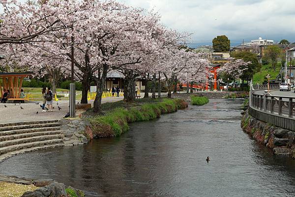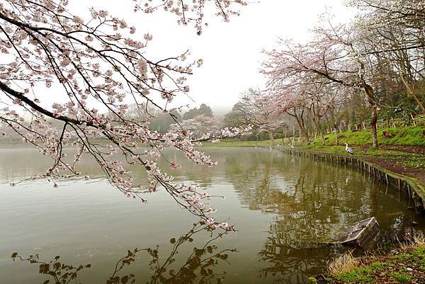 這個湖泊周圍種滿櫻花,也可供人垂釣,當天看到有些釣客坐在櫻花樹下愜意得吃著飯糰等待傻魚上鉤。岸邊及樹上也有些野鳥,只要聽到人聲靠近即振翅離開。
