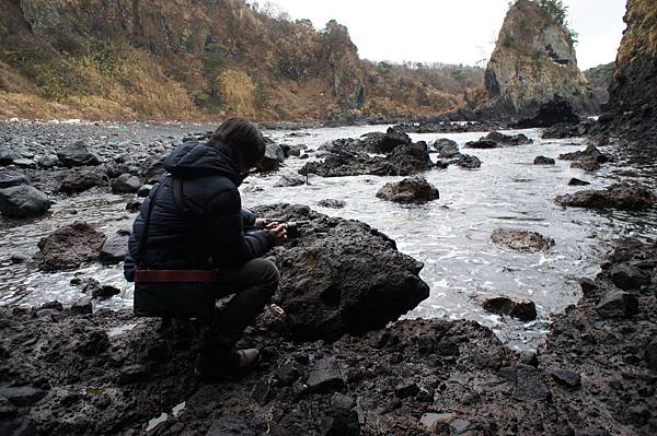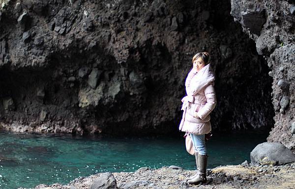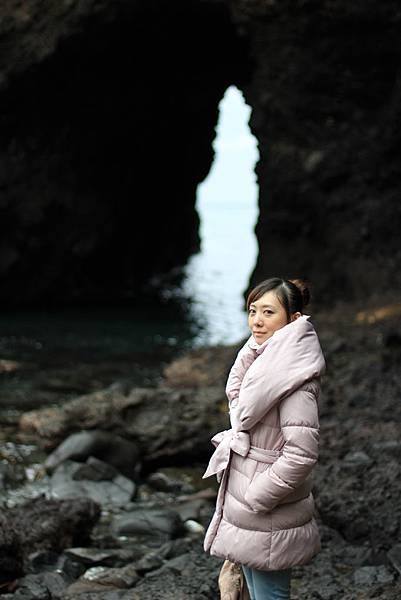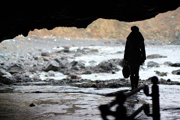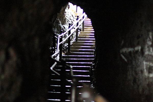 所產生的天然洞窟。我們兩人就像是探險隊一樣,走進了漆黑狹窄的洞窟,