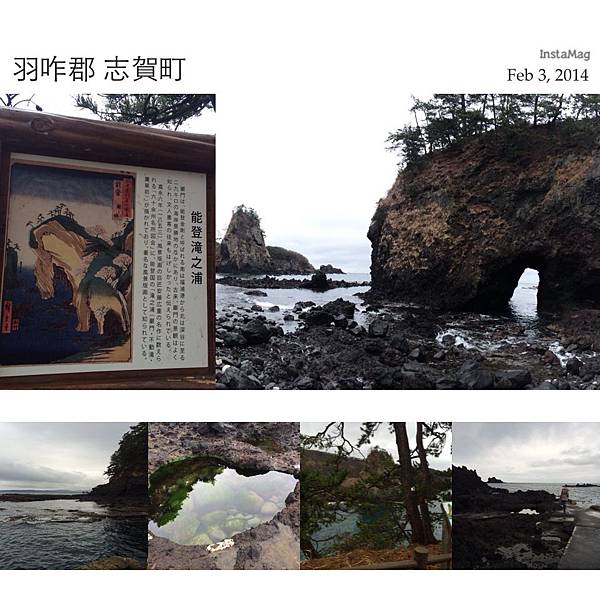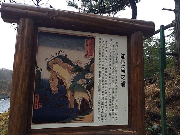 呢。我們兩人先散步至海岸,首先映入眼簾的是名勝能登金剛猪鼻崎表示板