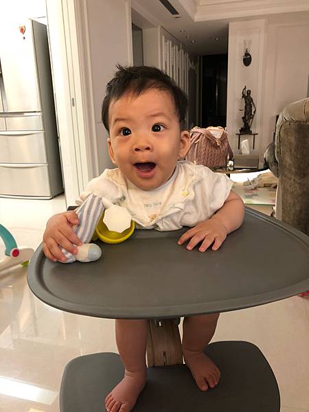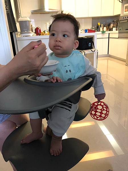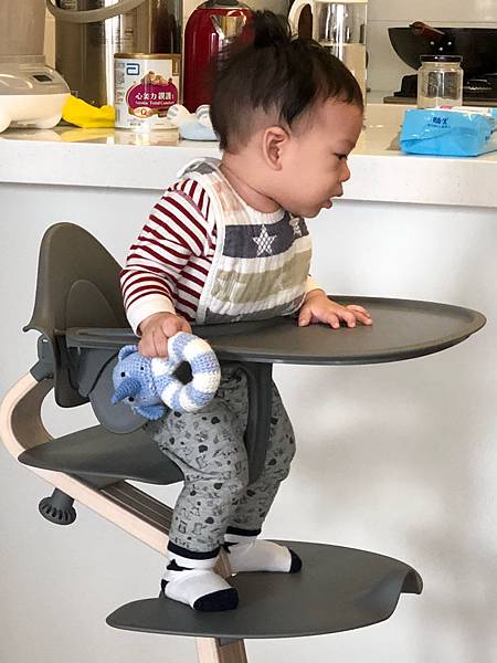 這把椅子好處是夠高,可以跟大人一起上餐桌,雖然他吃飯還是喜歡東張西望,但是感覺很穩,更有趣的是,他竟然6個多月大就在這個椅子站了起來。雖然覺得有些危險,可是感覺設計得很好,小子很安全得被包圍起來,不過由於沒有安全帶,他坐這個椅子的時候我還是會一直盯著。