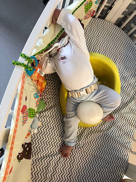 圖說:媽媽在善後被打翻的副食品,把他整尊擺到嬰兒床,哭倒,不過椅子真的很穩