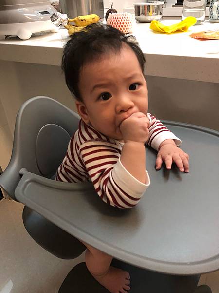 後來朋友介紹nomi椅子,這台椅子不便宜,可是看了網友介紹說寶寶一坐上去就很乖巧吃飯,甚至還吃到睡著,而且品牌說明腳踩得到對於寶寶咀嚼非常有幫助,再加上可以一路坐到成人,本想趁著週年慶入手,結果這個品牌很妙,為了維持市場價格統一,竟在週年慶漲價,結束後才調回原價。所以我在網路上看一看,最後是跟平輸商買了。