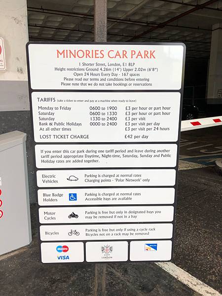 而且倫敦老房子老飯店多,很多不付停車場,結果我們找了一會兒發現有個Minories car park停車場很便宜,好幾次要去那一帶玩就把車停在那邊,還有跨年那天我們也把車停這裡坐地鐵回飯店。